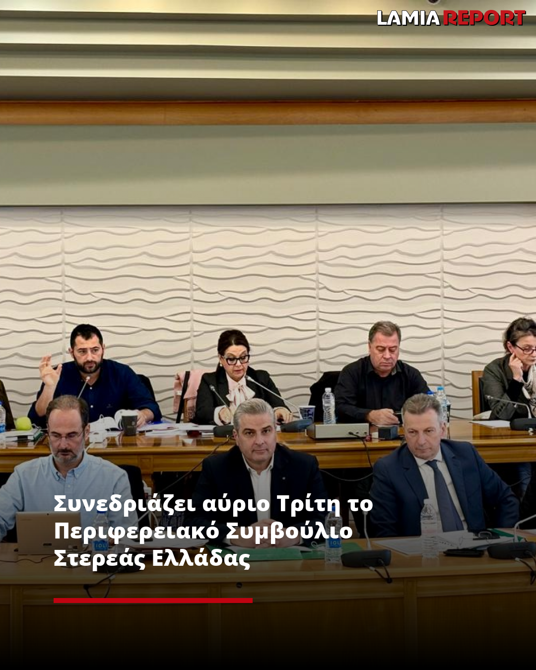 Τακτική συνεδρίαση του Περιφερειακού Συμβουλίου Στερεάς Ελλάδας, θα πραγματοποιηθεί την Τρίτη 10 Δεκεμβρίου 2024 και ώρα 11:00 π.μ, στην αίθουσα συνεδριάσεων «Λάμπρου Παπαδήμα» (Αινιάνων 6-8, Λαμία), σύμφωνα με τη σχετική πρόσκληση της Προέδρου του ΠΣ Λουκία Θεοδώρου - Μαγουλά.