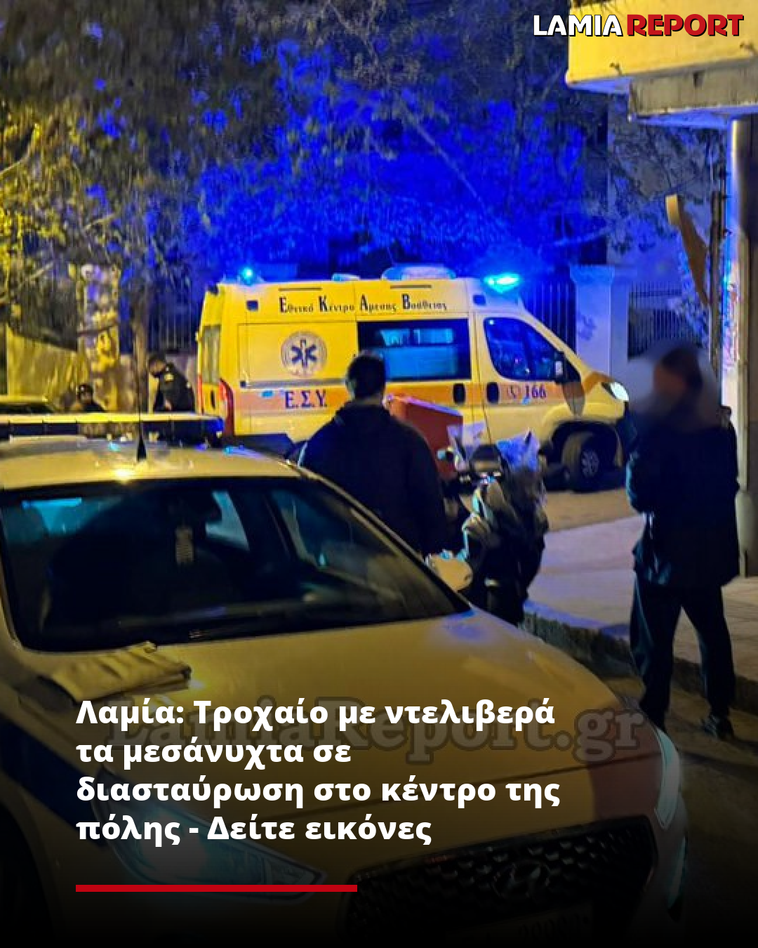 Λαμία: Τροχαίο με ντελιβερά τα μεσάνυχτα σε διασταύρωση στο κέντρο της πόλης - Δείτε εικόνες