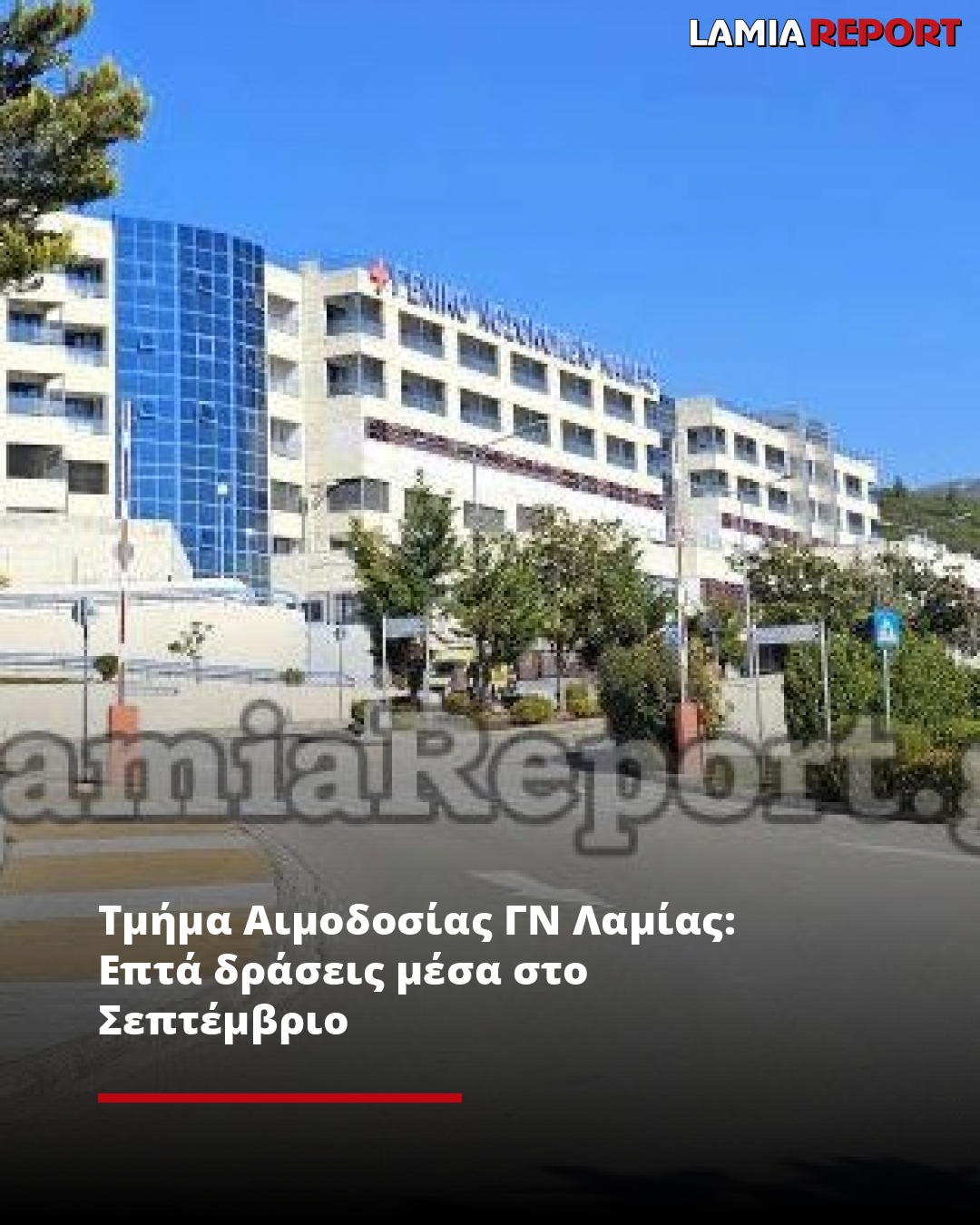 Ο Σεπτέμβριος είναι σημαντικός μήνας εθελοντικών δράσεων αιμοδοσίας. Το Τμήμα Αιμοδοσίας του Γενικού Νοσοκομείου Λαμίας, ανταποκρίνεται στο κάλεσμα φορέων για αιμοδοσία σε εύκολα προσβάσιμους και ασφαλείς χώρους της κοινότητας.