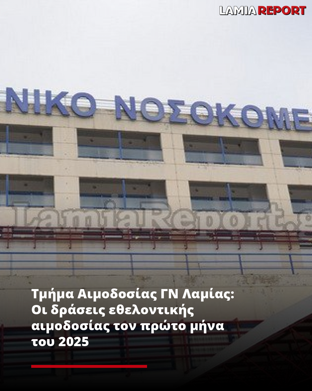 Τμήμα Αιμοδοσίας ΓΝ Λαμίας: Οι δράσεις εθελοντικής αιμοδοσίας τον πρώτο μήνα του 2025