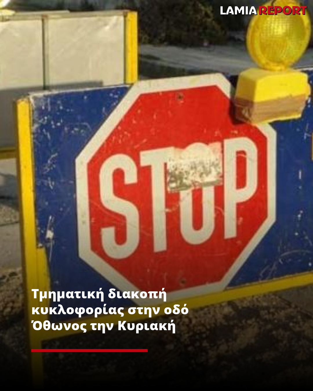 Στα πλαίσια αποστολισμού του εορταστικού διάκοσμου, η Διεύθυνση Υποδομών και Τεχνικών Έργων του Δήμου Λαμιέων ενημερώνει ότι την Κυριακή 2 Φεβρουαρίου από ώρα 08:00 έως 10:00 θα γίνει τμηματική διακοπή της κυκλοφορίας στο τμήμα της οδού Όθωνος, από τη διασταύρωση με την οδό Αμαλίας έως την Πλατεία Λαού, λόγω εργασιών.
