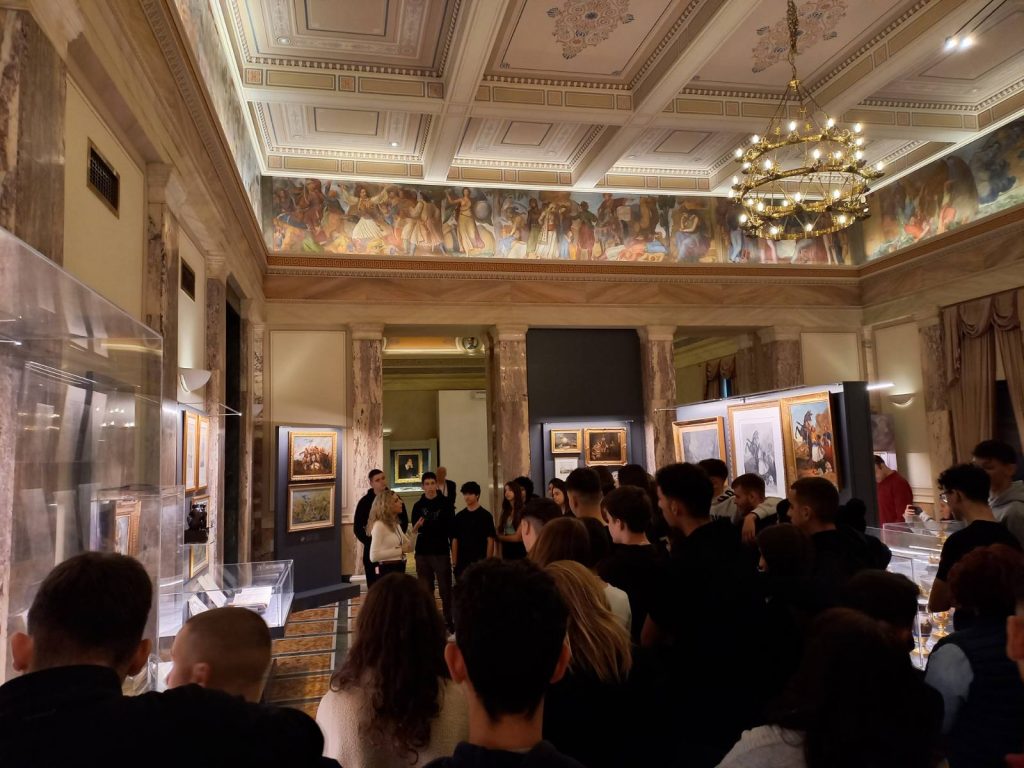 Στη συνέχεια επισκέφτηκαν μία ακόμη ιστορική αίθουσα που ήταν αφιερωμένη στον Ελευθέριο Βενιζέλο. Μάλιστα, η ζωφόρος στην παραπάνω αίθουσα είναι ένα εντυπωσιακό καλλιτεχνικό έργο που απεικονίζει σημαντικές στιγμές της ελληνικής ιστορίας. Είναι διακοσμημένη με σκηνές που αναδεικνύουν γεγονότα της Επανάστασης του 1821, τη δημιουργία του ελληνικού κράτους και άλλες κρίσιμες περιόδους της ελληνικής ιστορίας. Το έργο αυτό συνδυάζει στοιχεία ιστορίας και τέχνης, προσφέροντας στους μαθητές μια οπτική αναδρομή στα κρίσιμα αυτά γεγονότα. Σε αυτή την αίθουσα φιλοξενούνται επίσης, σημαντικά έγγραφα και εκθέματα, όπως για παράδειγμα το πρώτο σύνταγμα της Ελλάδας. Στη διάρκεια της ξενάγησης, οι μαθητές είχαν τη δυνατότητα να απευθύνουν ερωτήσεις και να συμμετάσχουν σε συζήτηση για τη δημοκρατική διαδικασία και τη νομοθεσία.