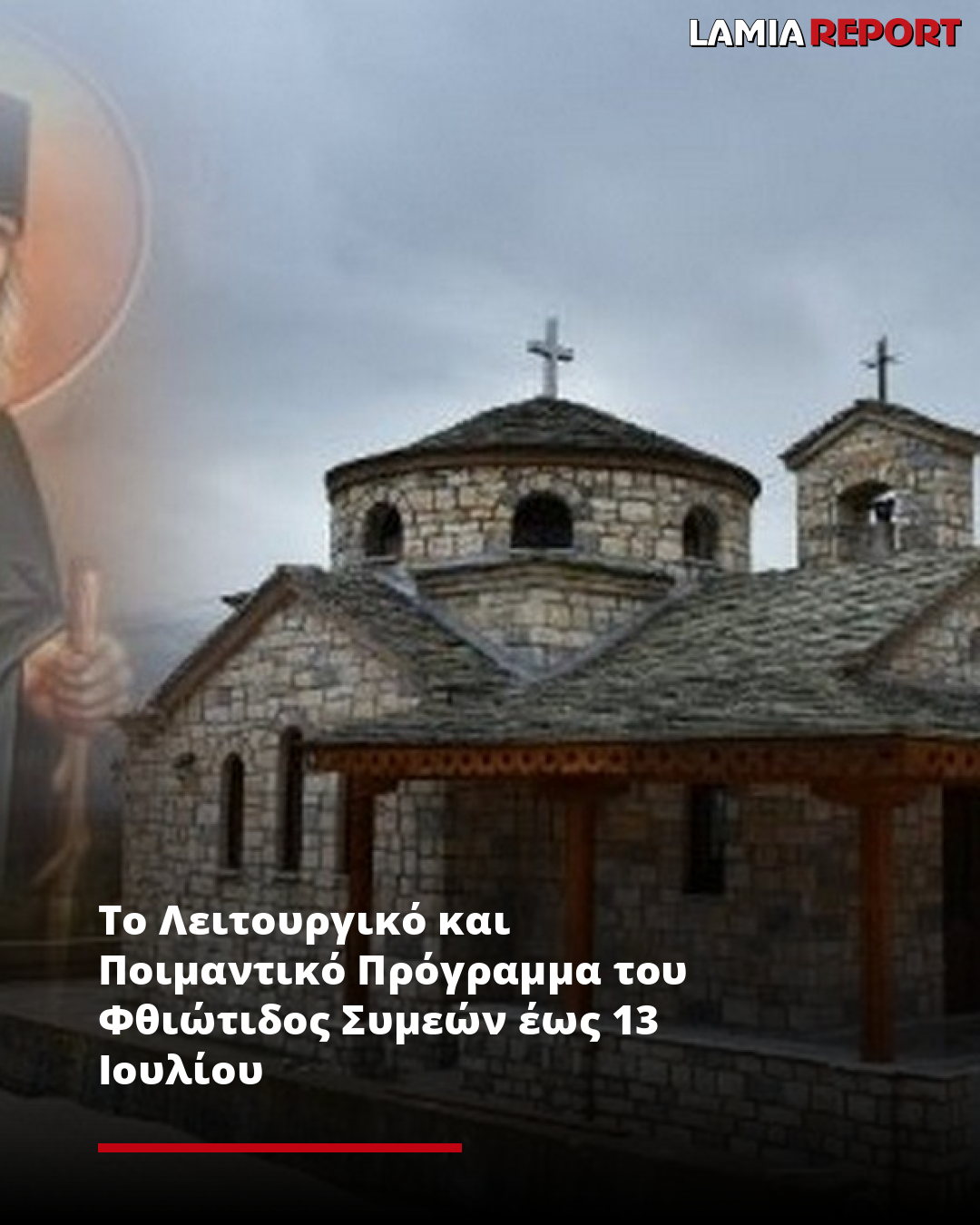 Από την Ιερά Μητρόπολη Φθιώτιδος ανακοινώθηκε το Λειτουργικό και Ποιμαντικό Πρόγραμμα του Σεβασμιωτάτου Μητροπολίτου Φθιώτιδος Συμεών, από Δευτέρα 7 Ιουλίου έως Κυριακή 6 Ιουλίου 2025. Η εβδομάδα που διανύουμε περιλαμβάνει την Εβδομάδα Προσευχής στον Όσιο Παΐσιο του Αγιορείτου Μακρακώμης. Δείτε αναλυτικά