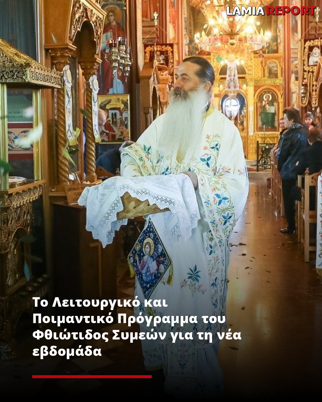 Η Ιερά Μητρόπολη Φθιώτιδος ανακοίνωσε το Λειτουργικό και Ποιμαντικό Πρόγραμμα του Σεβασμιωτάτου Μητροπολίτου Φθιώτιδος κ. Συμεών από Δευτέρα 28 Απριλίου μέχρι Κυριακή 4 Μαΐου 2025.