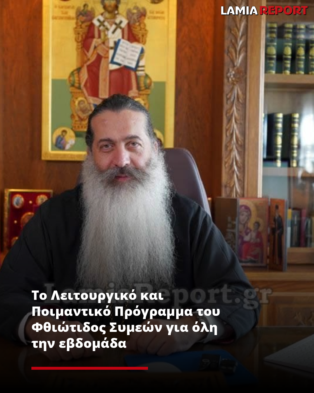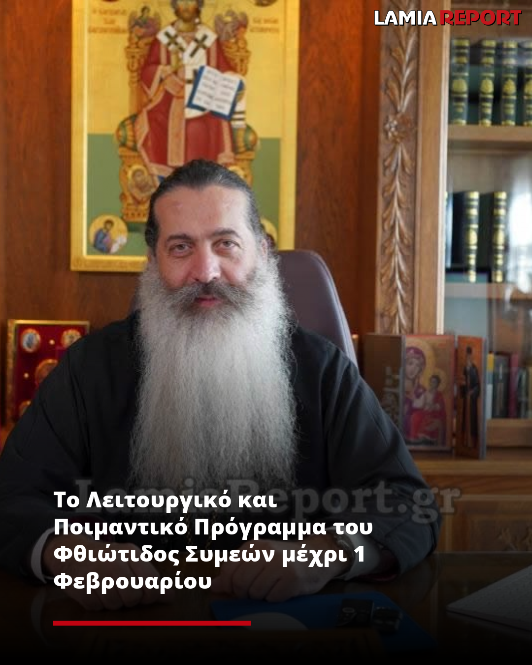 Η Ιερά Μητρόπολη Φθιώτιδος ανακοίνωσε το Λειτουργικό και Ποιμαντικό Πρόγραμμα του Σεβασμιωτάτου Μητροπολίτου Φθιώτιδος Συμεών από Δευτέρα 02 Φεβρουαρίου έως την Κυριακή 08 Φεβρουαριου 2026.