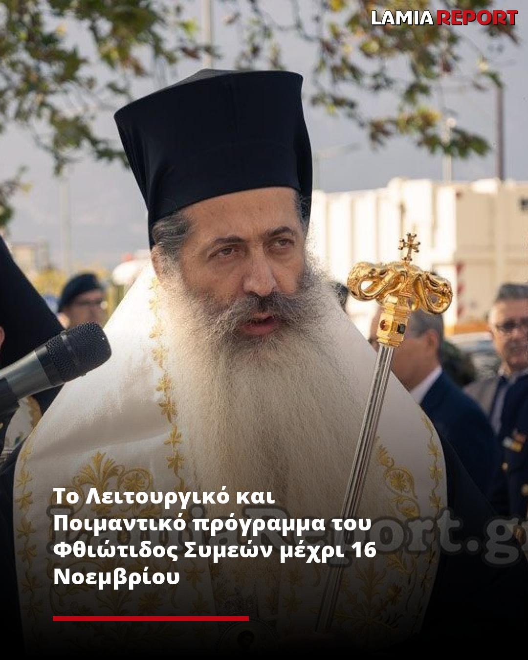 Η Ιερά Μητρόπολη Φθιώτιδος ανακοίνωσε το Λειτουργικό και Ποιμαντικό Πρόγραμμα του Σεβασμιωτάτου Μητροπολίτου Φθιώτιδος κ. Συμεών από Δευτέρα 10 μέχρι Κυριακή 16 Νοεμβρίου 2025.