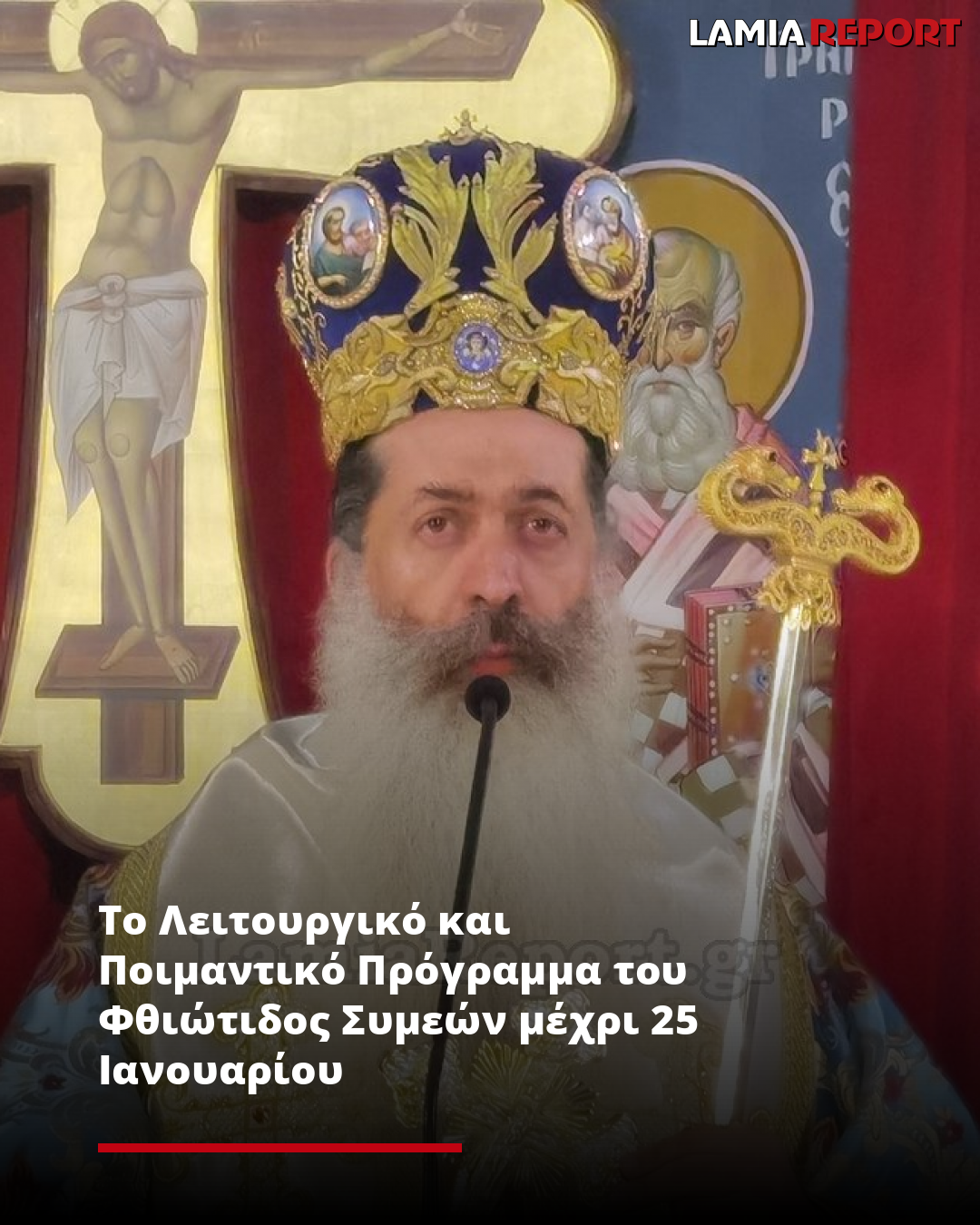 Η Ιερά Μητρόπολη Φθιώτιδος ανακοίνωσε το Λειτουργικό και Ποιμαντικό Πρόγραμμα του Σεβασμιωτάτου Μητροπολίτου Φθιώτιδος Συμεών από Δευτέρα 19 έως την Κυριακή 25 Ιανουαρίου 2026. Αναλυτικά: