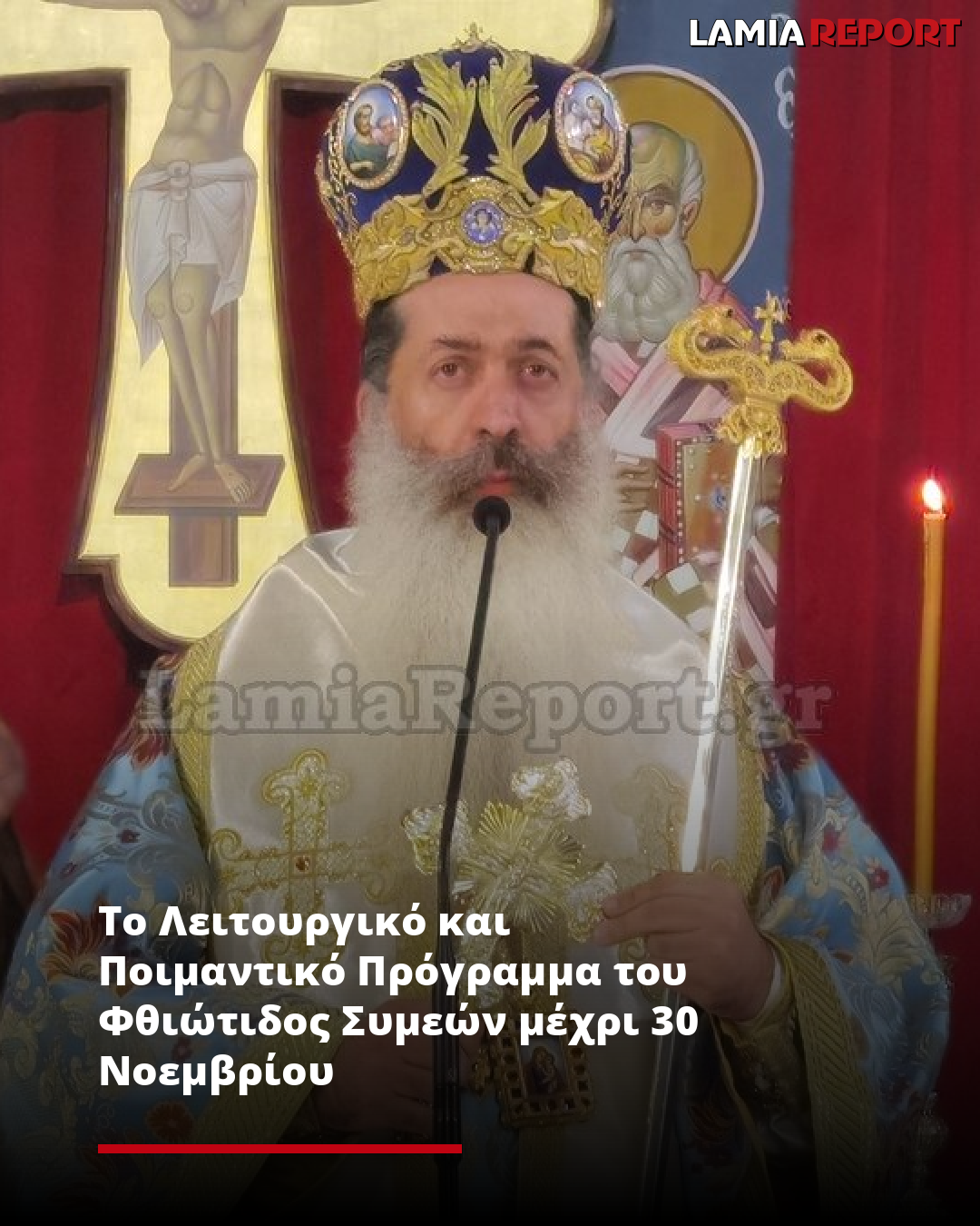 Η Ιερά Μητρόπολη Φθιώτιδος ανακοίνωσε το Λειτουργικό και Ποιμαντικό Πρόγραμμα του Σεβασμιωτάτου Μητροπολίτου Φθιώτιδος κ. Συμεών από Δευτέρα 24 Νοεμβρίου 2025…