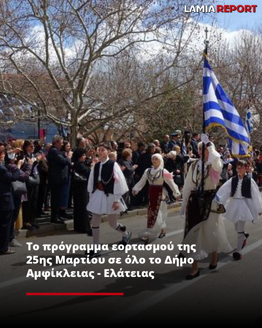 Το πρόγραμμα εορτασμού της 25ης Μαρτίου σε όλο το Δήμο Αμφίκλειας - Ελάτειας