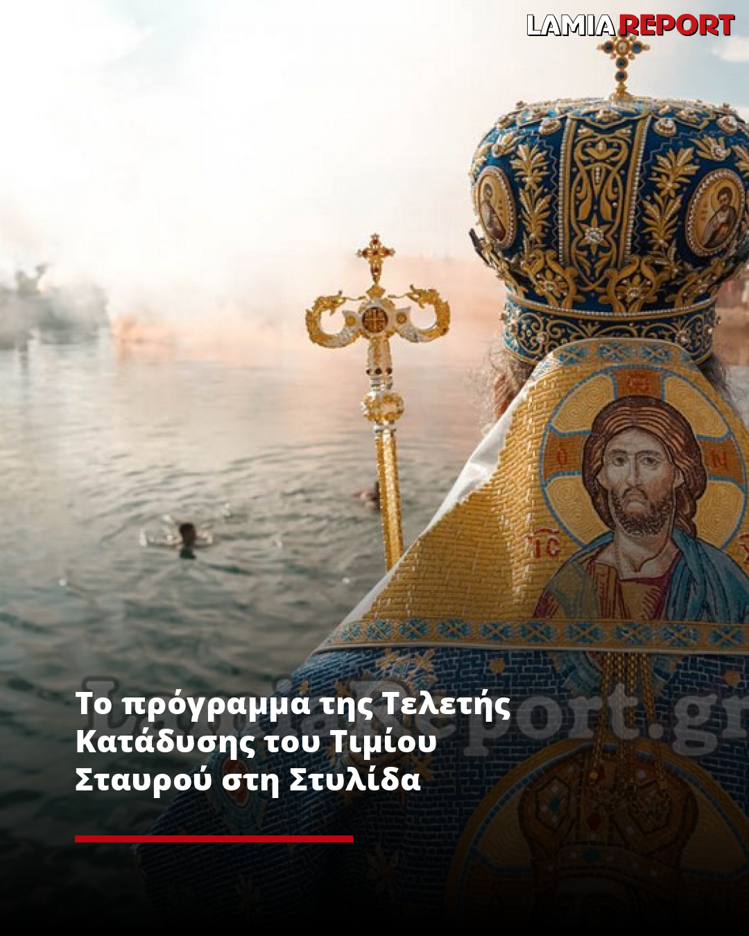 Το Λιμεναρχείο Στυλίδας ενημερώνει τους επιθυμούντες να καταδυθούν κατά την καθιερωμένη τελετή καθαγιασμού των υδάτων για την ανεύρεση του Τίμιου Σταυρού, που θα πραγματοποιηθεί στον λιμένα Στυλίδας την Τρίτη 06-01-2026 στο πλαίσιο του εορτασμού των Θεοφανείων, ότι θα πρέπει να δηλωθεί η συμμετοχή τους στο Γραφείο Γενικής Αστυνομίας του Λιμεναρχείου (τηλ. 22380-22329) το αργότερο μέχρι την 09:00 ώρα της 6ης Ιανουαρίου 2026, προκειμένου να διασφαλιστεί το εύρυθμον της τελετής.
