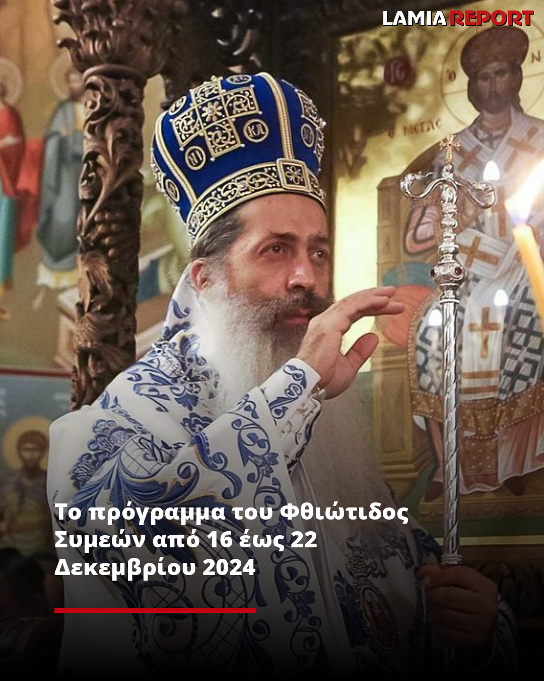 Το πρόγραμμα του Φθιώτιδος Συμεών από 16 έως 22 Δεκεμβρίου 2024