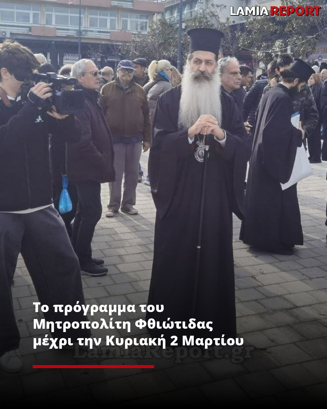 Η Ιερά Μητρόπολη Φθιώτιδος ανακοίνωσε το Λειτουργικό και Ποιμαντικό Πρόγραμμα του Σεβασμιωτάτου Μητροπολίτου Φθιώτιδος Συμεών για την εβδομάδα από 24 Φεβρουαρίου έως 2 Μαρτίου 2025.