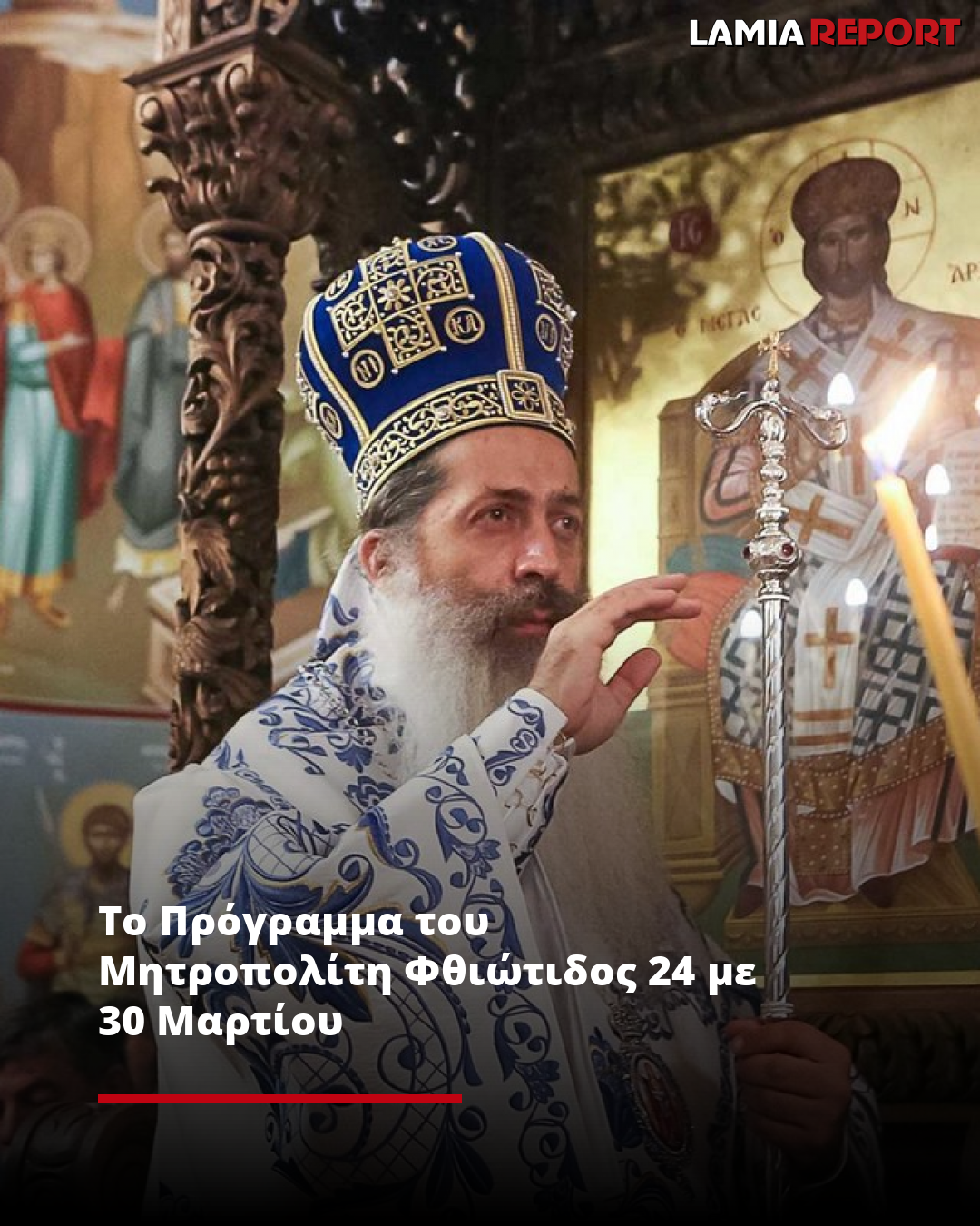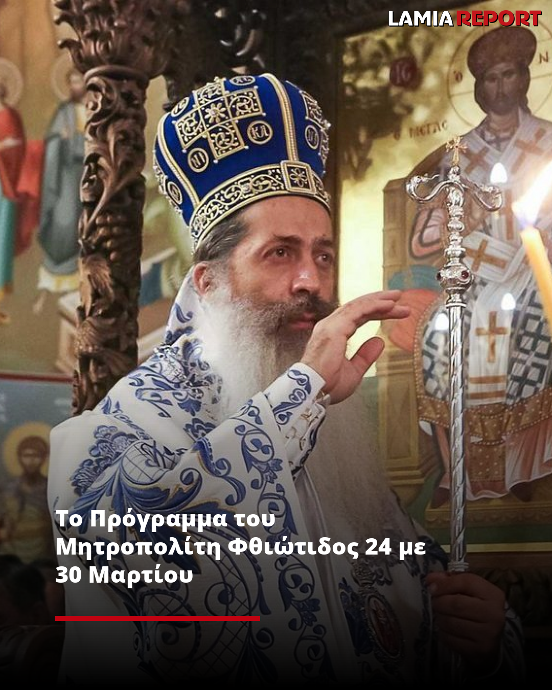 Η Ιερά Μητρόπολη Φθιώτιδος ανακοίνωσε το Λειτουργικό και Ποιμαντικό Πρόγραμμα του Σεβασμιωτάτου Μητροπολίτου Φθιώτιδος Συμεών για την εβδομάδα από 24 έως 30 Μαρτίου 2025.