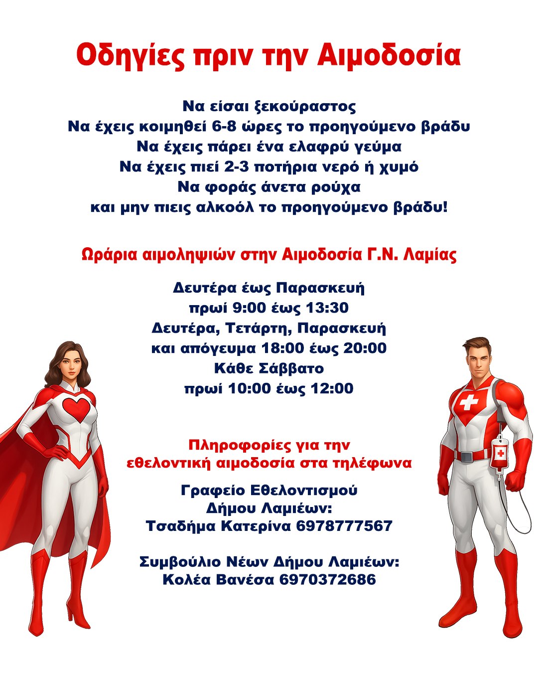 Φυσικά, ακόμα και αν δεν μπορέσετε να έρθετε το Σάββατο 6 Δεκεμβρίου στην αιμοδοσία, μπορείτε να επισκεφτείτε το Τμήμα Αιμοδοσίας στο Γενικό Νοσοκομείο Λαμίας.