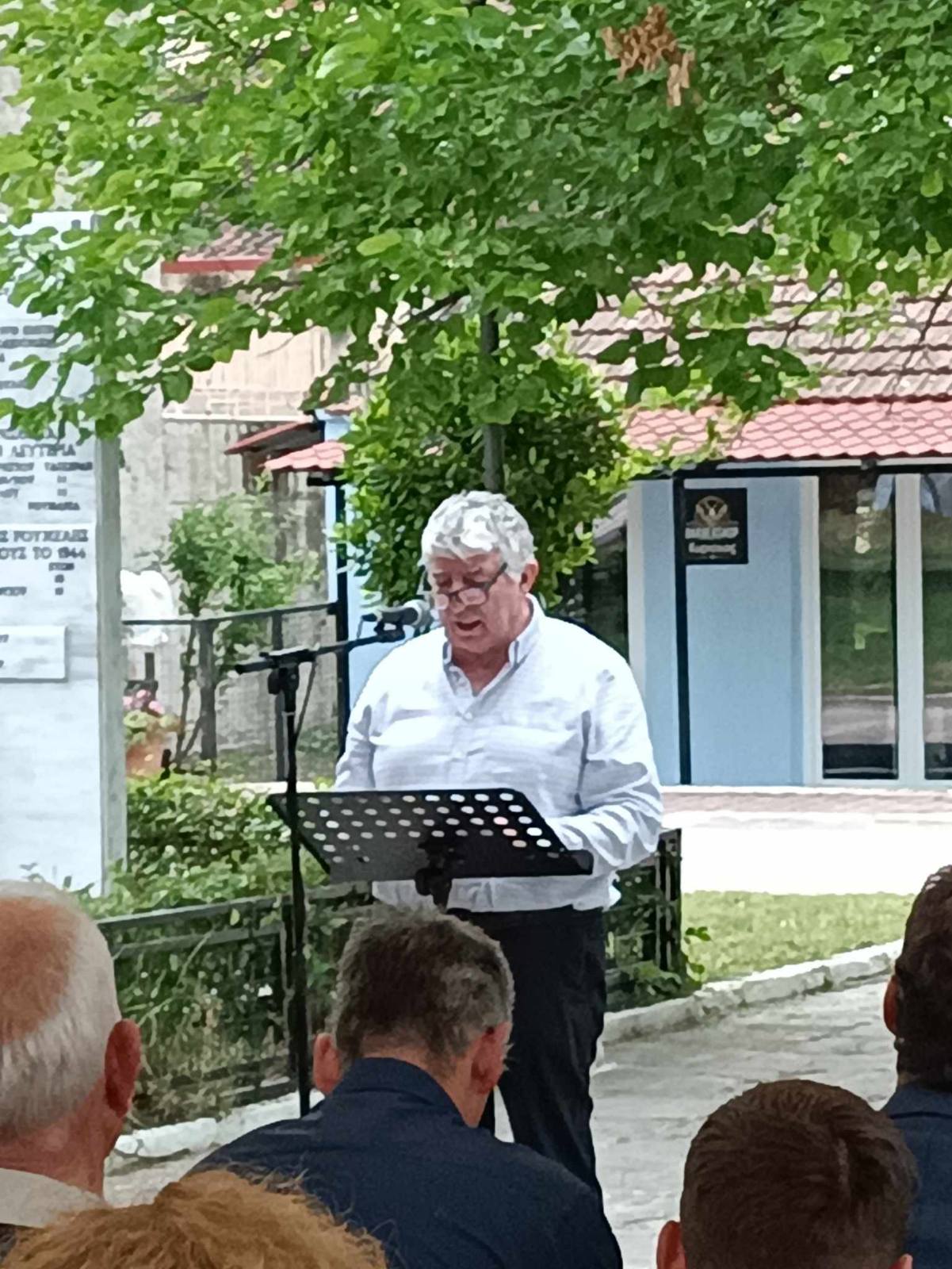 Στον χαιρετισμό του, ο Δήμαρχος εξήρε τον ηρωισμό των εκτελεσθέντων, επισημαίνοντας ότι η διατήρηση της ιστορικής μνήμης αποτελεί χρέος τιμής αλλά και πράξη αντίστασης στη λήθη. Όπως τόνισε, η θυσία αυτών των ανθρώπων αποτελεί φάρο δημοκρατίας, ελευθερίας και ανθρώπινης αξιοπρέπειας. Παράλληλα, πρότεινε την ενίσχυση δράσεων ιστορικής μνήμης, ιδιαίτερα προς τις νεότερες γενιές, με στόχο τη διατήρηση της ιστορικής συνείδησης.