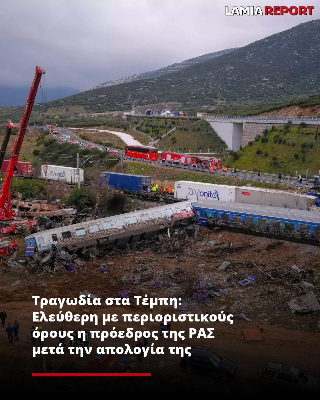 Ελεύθερη με περιοριστικούς όρους αφέθηκε η πρόεδρος της Ρυθμιστικής Αρχής Σιδηροδρόμων (ΡΑΣ), μετά την πολύωρη απολογία της σήμερα (15.10.2024) στον εφέτη ανακριτή που διερευνά τη σιδηροδρομική τραγωδία των Τεμπών.