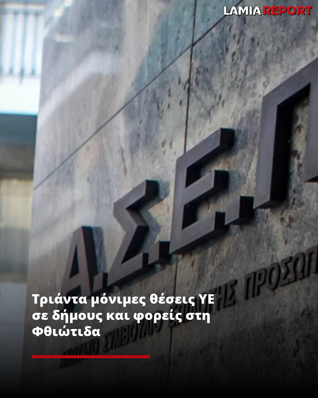 Τριάντα μόνιμες θέσεις ΥΕ σε δήμους και φορείς στη Φθιώτιδα