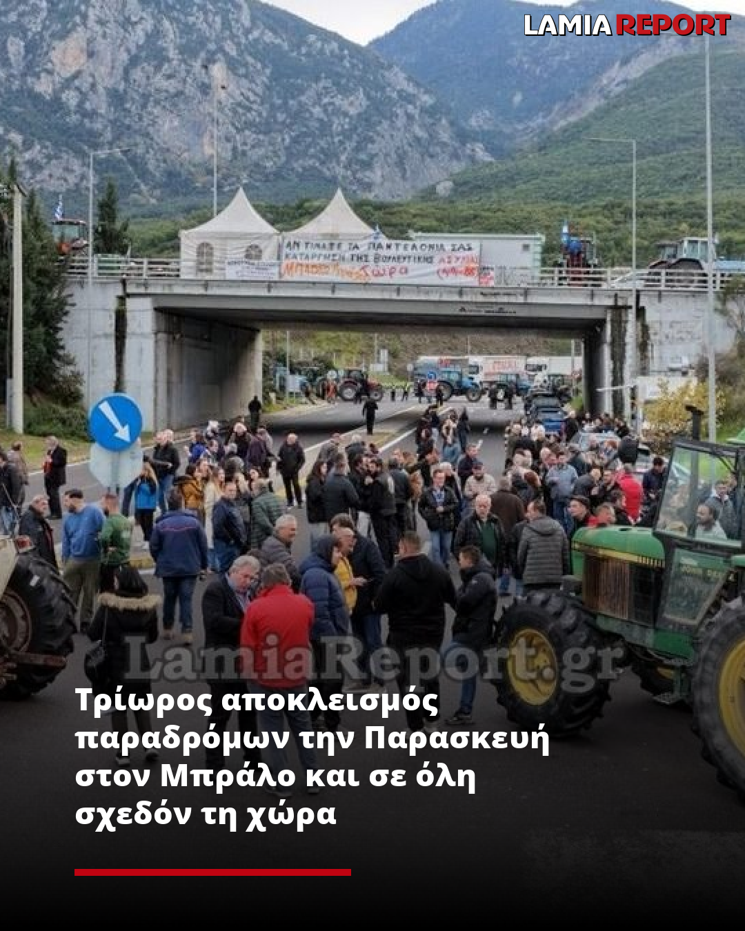 Σύμφωνα με την απόφαση του Μπλόκου του Μπράλου είναι να κλείσουν και οι παράδρομοι την Παρασκευή από 2 το μεσημέρι μέχρι τις 5 το απόγευμα!