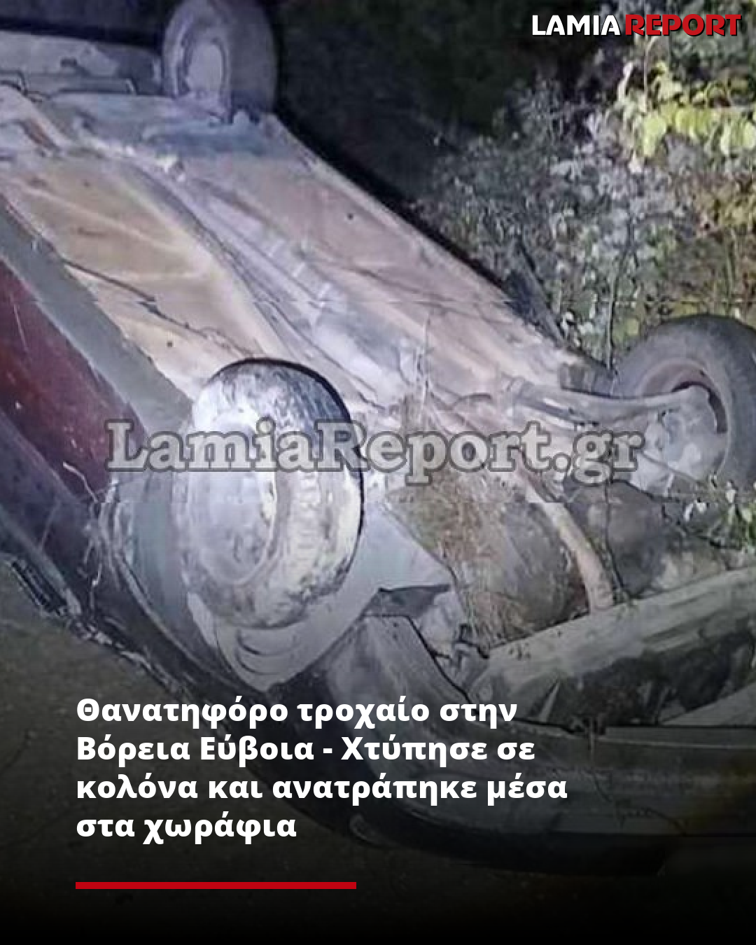 Θανατηφόρο τροχαίο στην Βόρεια Εύβοια - Χτύπησε σε κολόνα και ανατράπηκε μέσα στα χωράφια