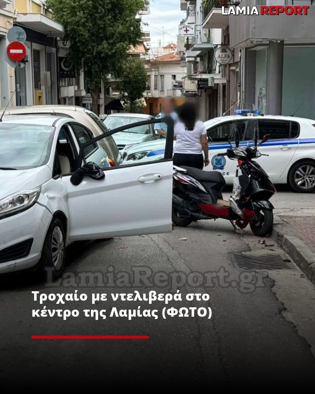 Τροχαίο με ντελιβερά στο κέντρο της Λαμίας (ΦΩΤΟ)