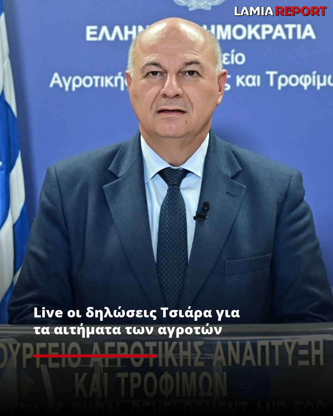 Παρακολουθήστε ζωντανά τις δηλώσεις του υπουργού Αγροτικής Ανάπτυξης & Τροφίμων Κώστα Τσιάρα για τα αιτήματα των αγροτών: