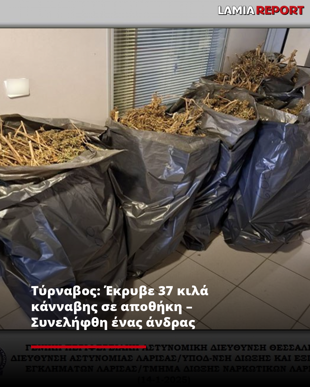 Τύρναβος: Έκρυβε 37 κιλά κάνναβης σε αποθήκη – Συνελήφθη ένας άνδρας