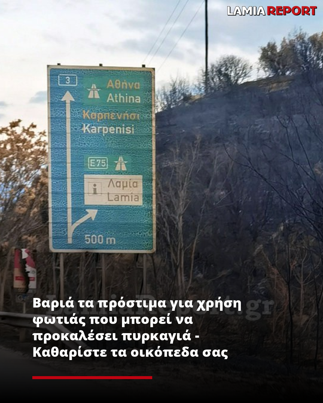 «Το Αυτοτελές Τμήμα Πολιτικής Προστασία του Δήμου Λαμιέων, με αφορμή την έναρξη της αντιπυρικής περιόδου 2025 από 01/05/2025 έως 30/10/2025, υπενθυμίζει στους δημότες του τις διατάξεις της Αποφ-21837/Φ700/20/2024/24 (ΦΕΚ-2695/Β/9-5-24) για την υποχρέωση καθαρισμού των οικοπέδων τους και για την υποβολή δήλωσης καθαρισμού, ακολουθώντας τον σύνδεσμο: https://akatharista.apps.gov.gr/ ή κάνοντας αναζήτηση στο διαδίκτυο με τον όρο «ακαθάριστα οικόπεδα gov»
