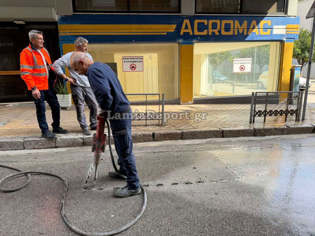 Συνεργεία της ΔΕΥΑΛ έφτασαν γρήγορα στο σημείο και έπιασαν δουλειά για την αποκατάσταση του προβλήματος.
