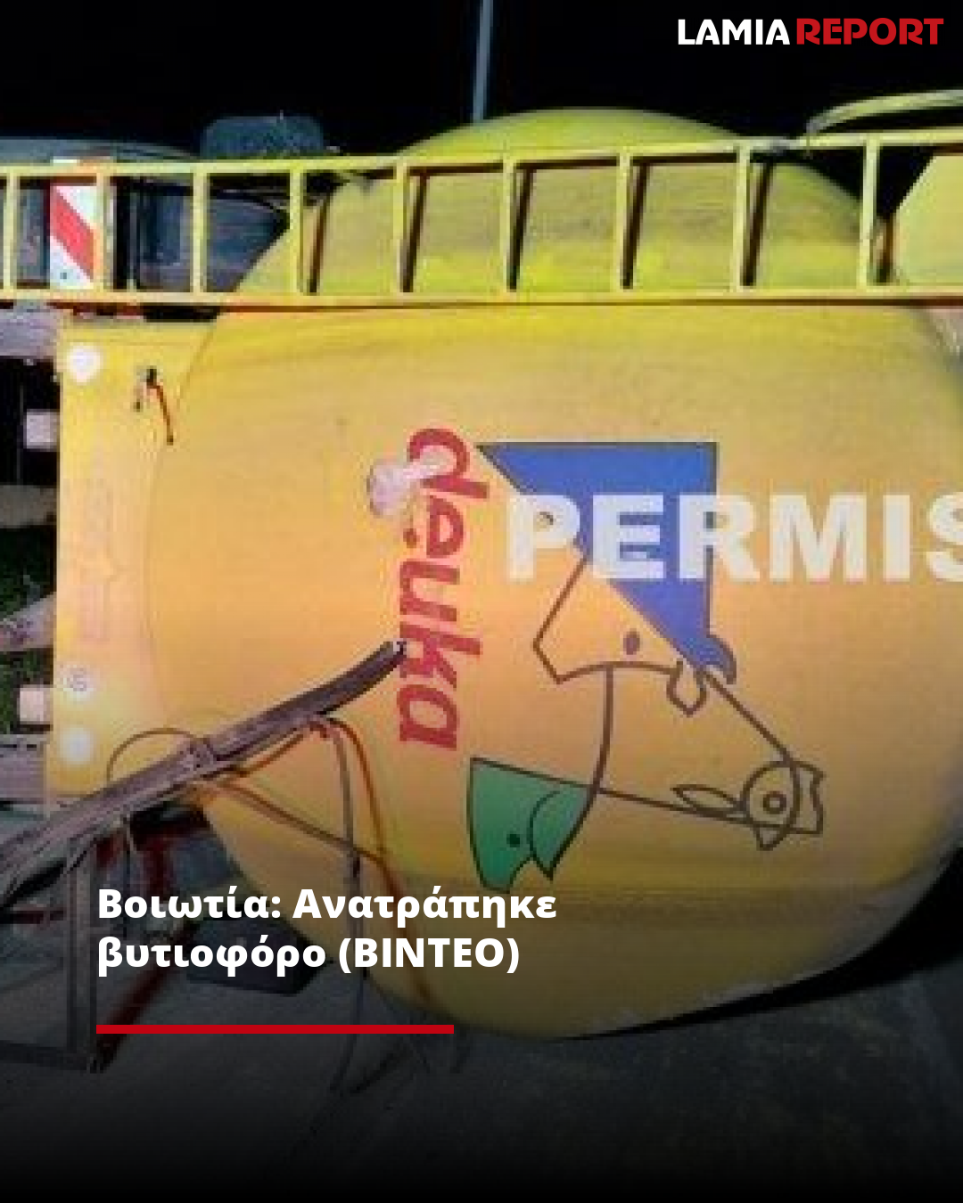 Βοιωτία: Ανατράπηκε βυτιοφόρο (ΒΙΝΤΕΟ)