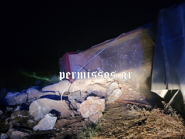 Φορτηγό που μετέφερε πέτρες ανατράπηκε το βράδυ του Σαββάτου (7/6/25) στην ε.ο. Θηβών-Λιβαδειάς στο ύψος της Σπηλιάς έξω από την Αλίαρτο.