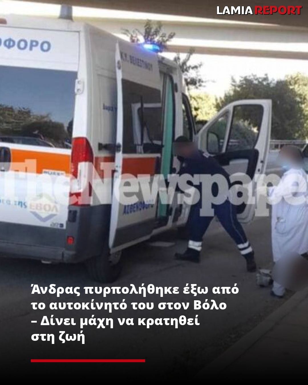 άχη για να κρατηθεί στη ζωή δίνει ένας άνδρας στο Νοσοκομείο του Βόλου, καθώς το μεσημέρι του Σαββάτου φέρεται να πυρπολήθηκε έξω από το αυτοκίνητό του, στον παράδρομο της εθνικής οδού Βόλου – Λάρισας, κοντά στον κόμβο του Βελεστίνου.