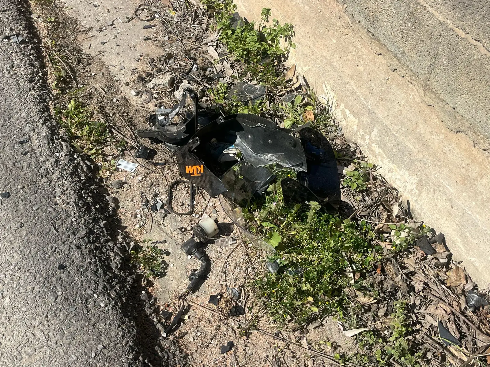 Συντρίμμια της μηχανής του 32χρονου που σκοτώθηκε μαζί με την 31χρονη στο τροχαίο στον Βόλο