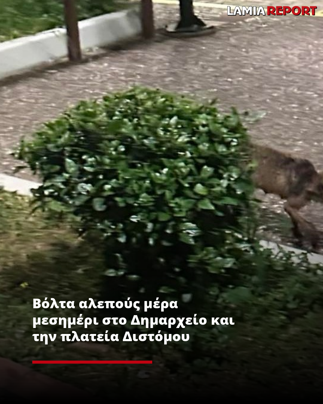 Στην Κάτω Πλατεία του Διστόμου, στο αλσάκι μπροστά στο Δημαρχείο και το ΚΕΠ (χθες Παρασκευή) και σήμερα διαδοχικά στις αυλές των ακριβώς απέναντι σπιτιών βολτάρει μια αλεπού!