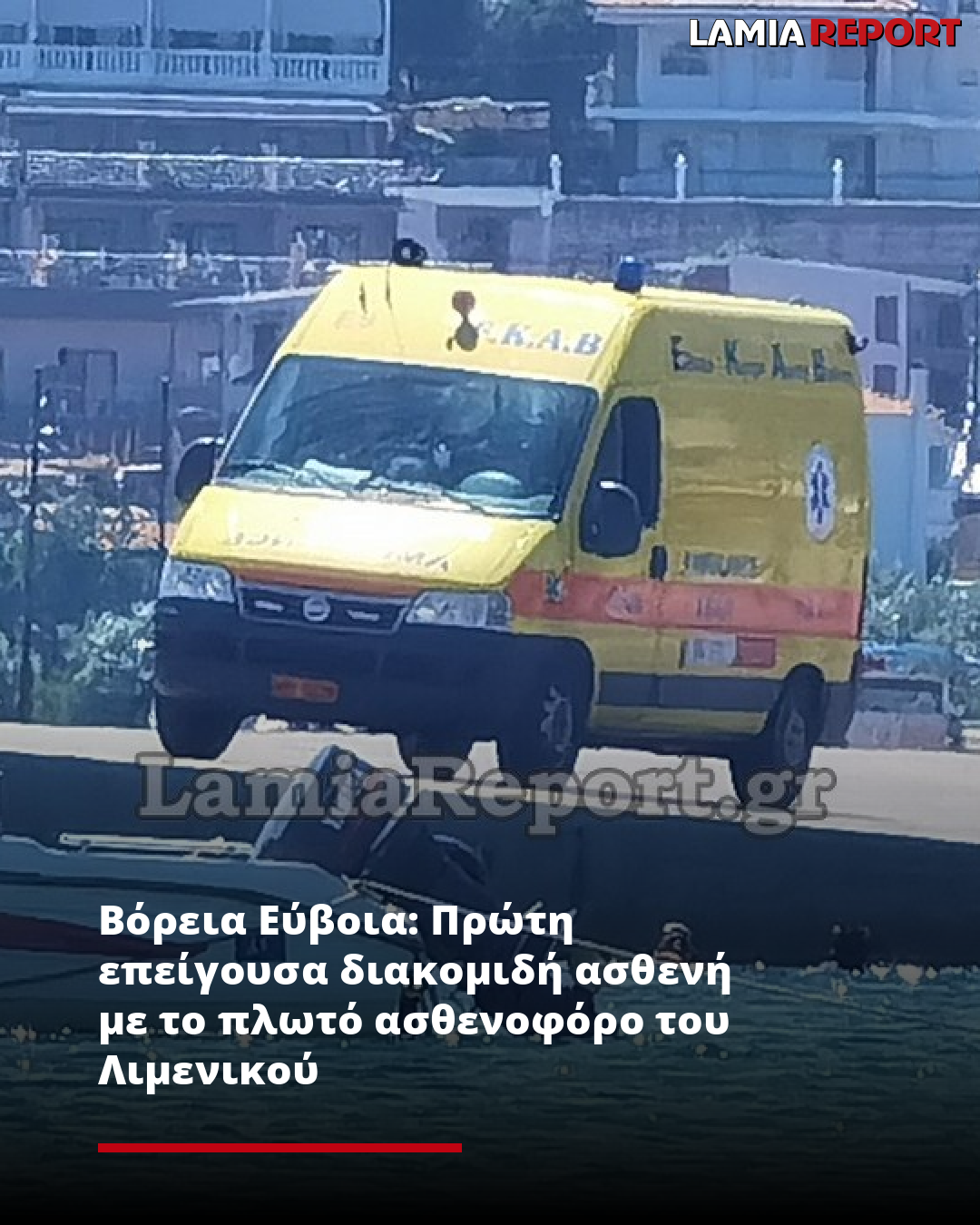 Άμεσα στήθηκε γέφυρα ζωής, για πρώτη φορά με το πλωτό ασθενοφόρο του Λιμενικού Σώματος το οποίο από φέτος βρίσκεται στους Ωρεούς για επείγουσες διακομιδές, μήκους 12 μέτρων και μέγιστης ταχύτητας 45 ναυτικών μιλίων.