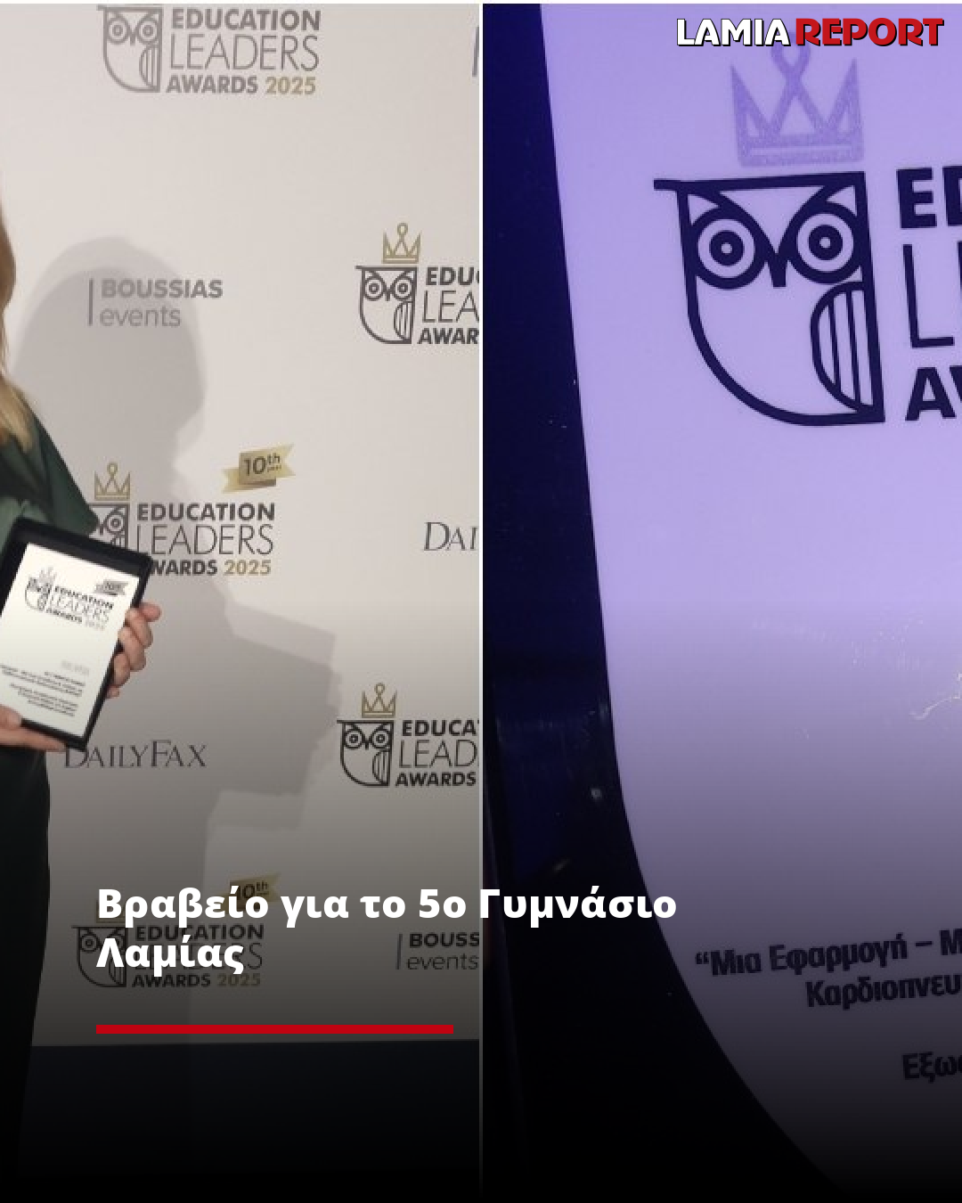 Το Αργυρό Βραβείο στην κατηγορία "Εξωστρέφεια" –Εκπαιδευτικες επισκέψεις και βιωματική μάθηση στη Δευτεροβάθμια εκπαίδευση Education Leaders Awards 2025, κατέκτησε το 5ο Γυμνάσιο Λαμίας.