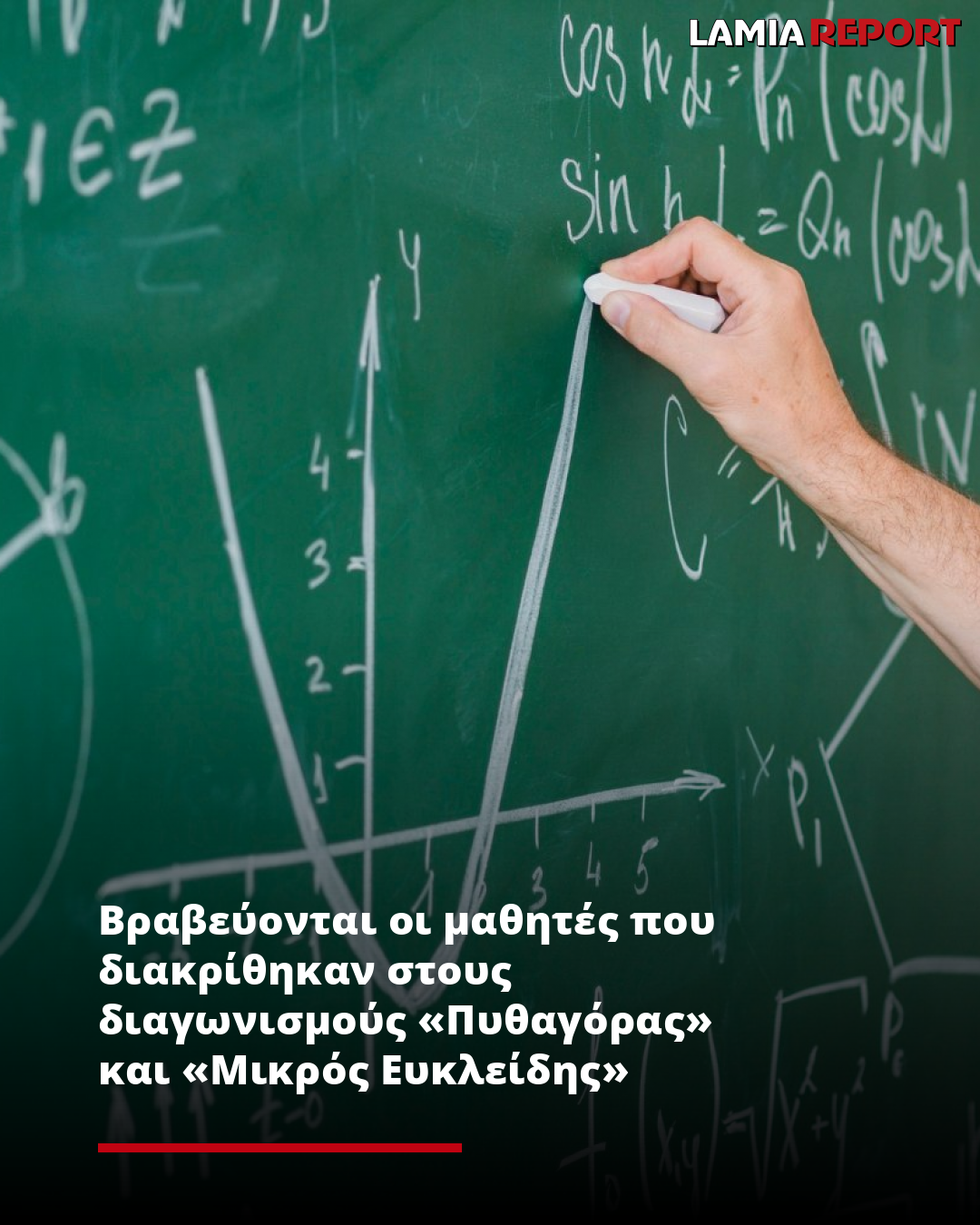 Το Παράρτημα Φθιώτιδας της Ελληνικής Μαθηματικής Εταιρείας διοργανώνει εκδήλωση βράβευσης των μαθητών Γυμνασίων και Δημοτικών του Νομού Φθιώτιδας, οι οποίοι διακρίθηκαν στους φετινούς πανελλήνιους διαγωνισμούς «Πυθαγόρας» και «Παιχνίδι και Μαθηματικά». Η εκδήλωση θα πραγματοποιηθεί την Κυριακή 21-9-2025 και ώρα 11:00 π.μ. στο Δημοτικό θέατρο Λαμίας ( Υψηλάντου 24).