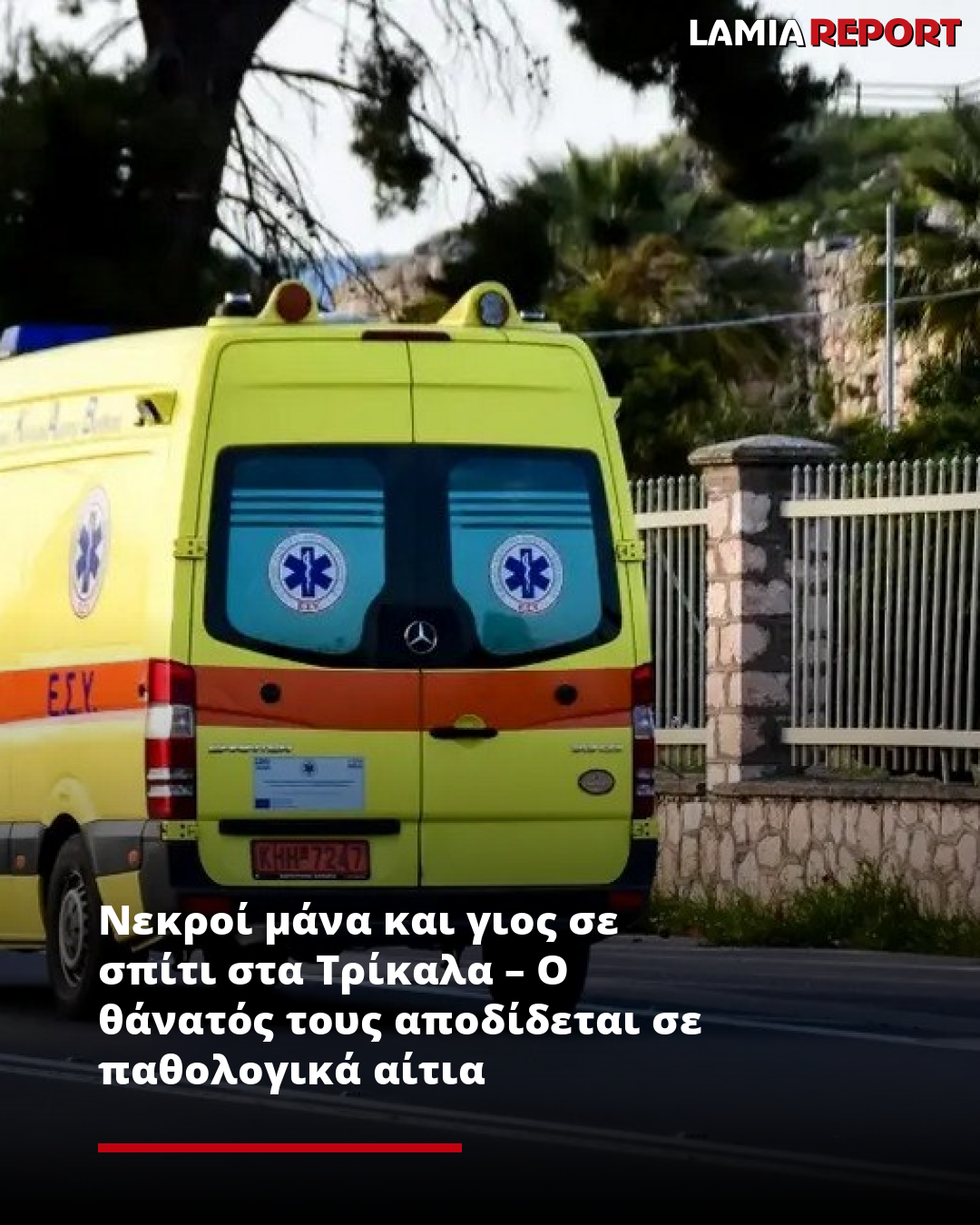 Νεκροί μάνα και γιος σε σπίτι στα Τρίκαλα – Ο θάνατός τους αποδίδεται σε παθολογικά αίτια