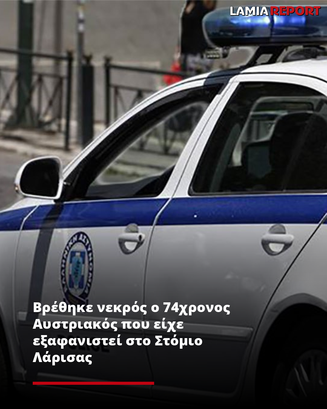 Βρέθηκε νεκρός ο 74χρονος Αυστριακός που είχε εξαφανιστεί στο Στόμιο Λάρισας