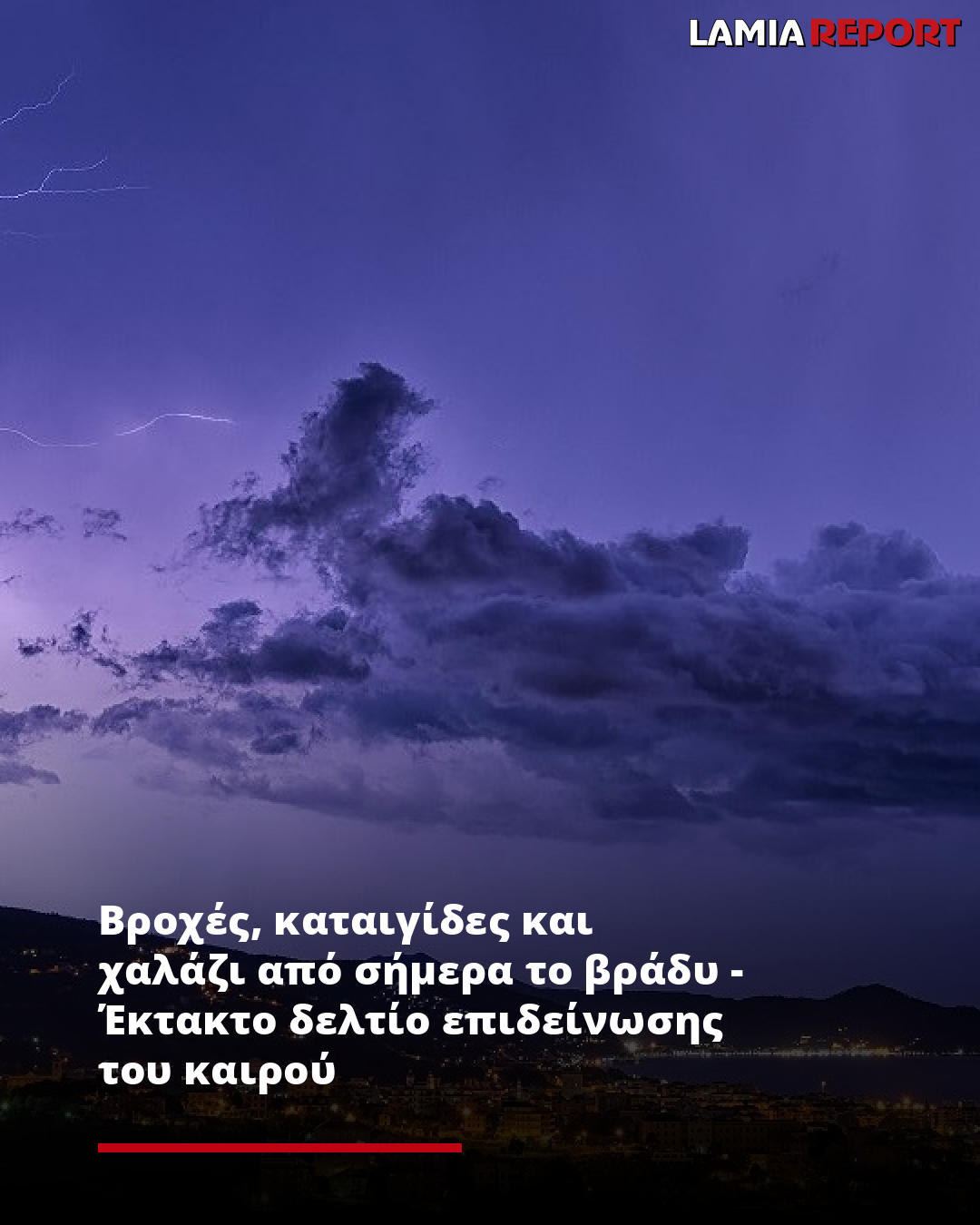 Η ΕΜΥ εξέδωσε έκτακτο δελτίο επιδείνωσης του καιρού, σύμφωνα με το οποίο αναμένονται ισχυρές βροχές και καταιγίδες οι οποίες θα συνοδεύονται τοπικά από: