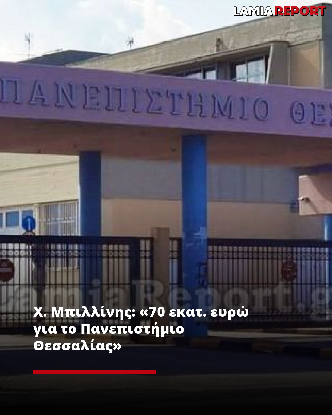Χ. Μπιλλίνης: «70 εκατ. ευρώ για το Πανεπιστήμιο Θεσσαλίας»