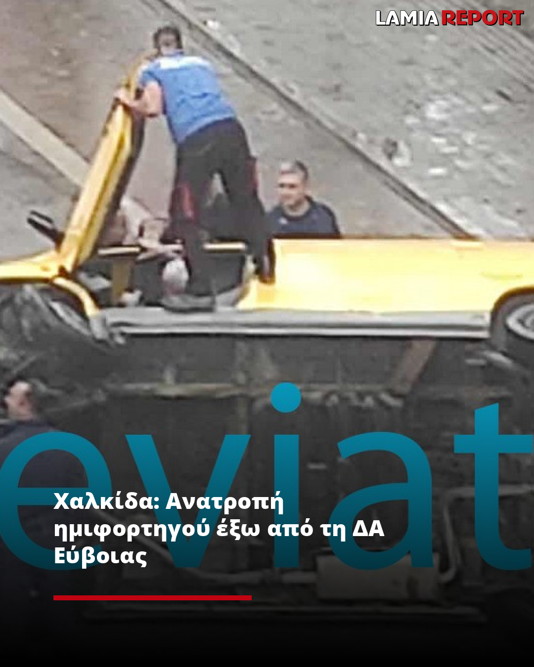 Χαλκίδα: Ανατροπή ημιφορτηγού έξω από τη ΔΑ Εύβοιας