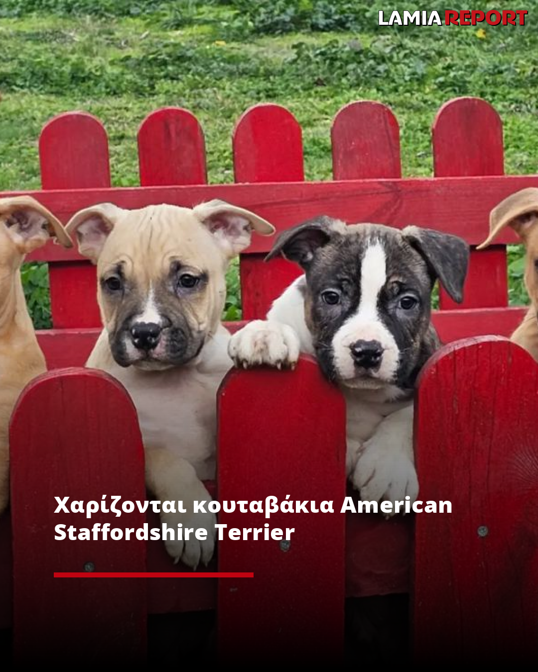 Χαρίζονται 4 κουταβάκια, 2 μηνών, ράτσας American Staffordshire Terrier!