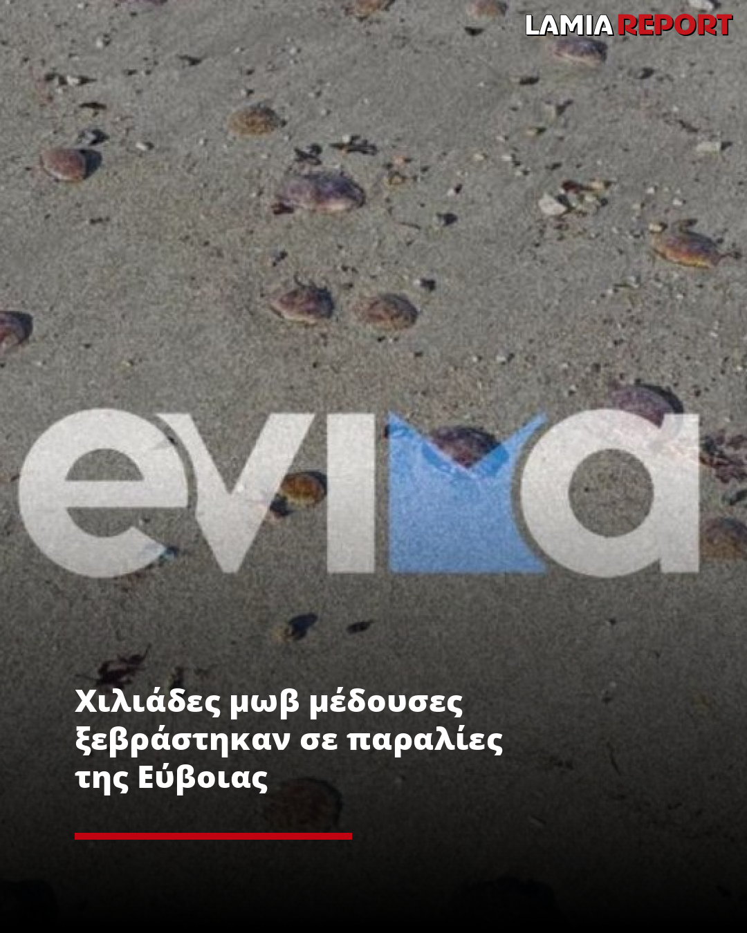 Σύμφωνα με το ρεπορτάζ του evima.gr, χιλιάδες μέδουσε , μωβ με πλοκάμια έχει ξεβράσει η θάλασσα στην παραλία της Λιανής Άμμου και στην παραλία Κουρέντι στη Χαλκίδα.