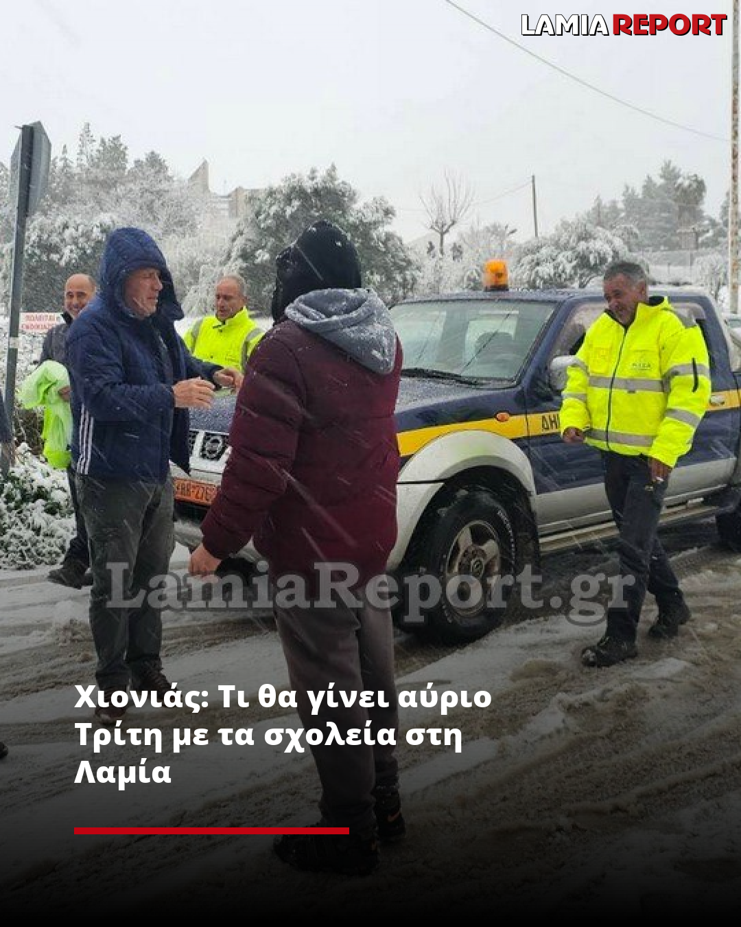 Επειδή δεχόμαστε καταιγισμό μηνυμάτων σχετικά με τη λειτουργία των σχολείων αύριο Τρίτη (14/1) στο Δήμο Λαμιέων, σε επικοινωνία που είχαμε με τον Δήμαρχο Πανουργιά Παπαϊωάννου, μας ενημέρωσε ότι η απόφαση θα ανακοινωθεί μετά τις 6:00' το απόγευμα, αφού ληφθούν υπόψη και τα τελευταία προγνωστικά μοντέλα για τα καιρικά φαινόμενα στην περιοχή.
