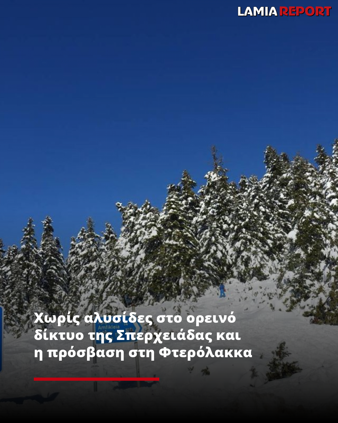 Με νεότερες αποφάσεις της Διεύθυνσης Αστυνομίας Φθιώτιδας, αίρεται από σήμερα Δευτέρα 20 Ιανουαρίου 2025, από τις 10:20’ πμ, το μέτρο της υποχρεωτικής χρήσης αντιολισθητικών αλυσίδων όλων των οχημάτων στη Δημοτική Ενότητας Σπερχειάδας πλην της Επ. Οδού Γαρδικίου – Γραμμένης Οξυάς (όπου απαιτείται η υποχρεωτική χρήση αντιολισθητικών αλυσίδων από όλα τα οχήματα).