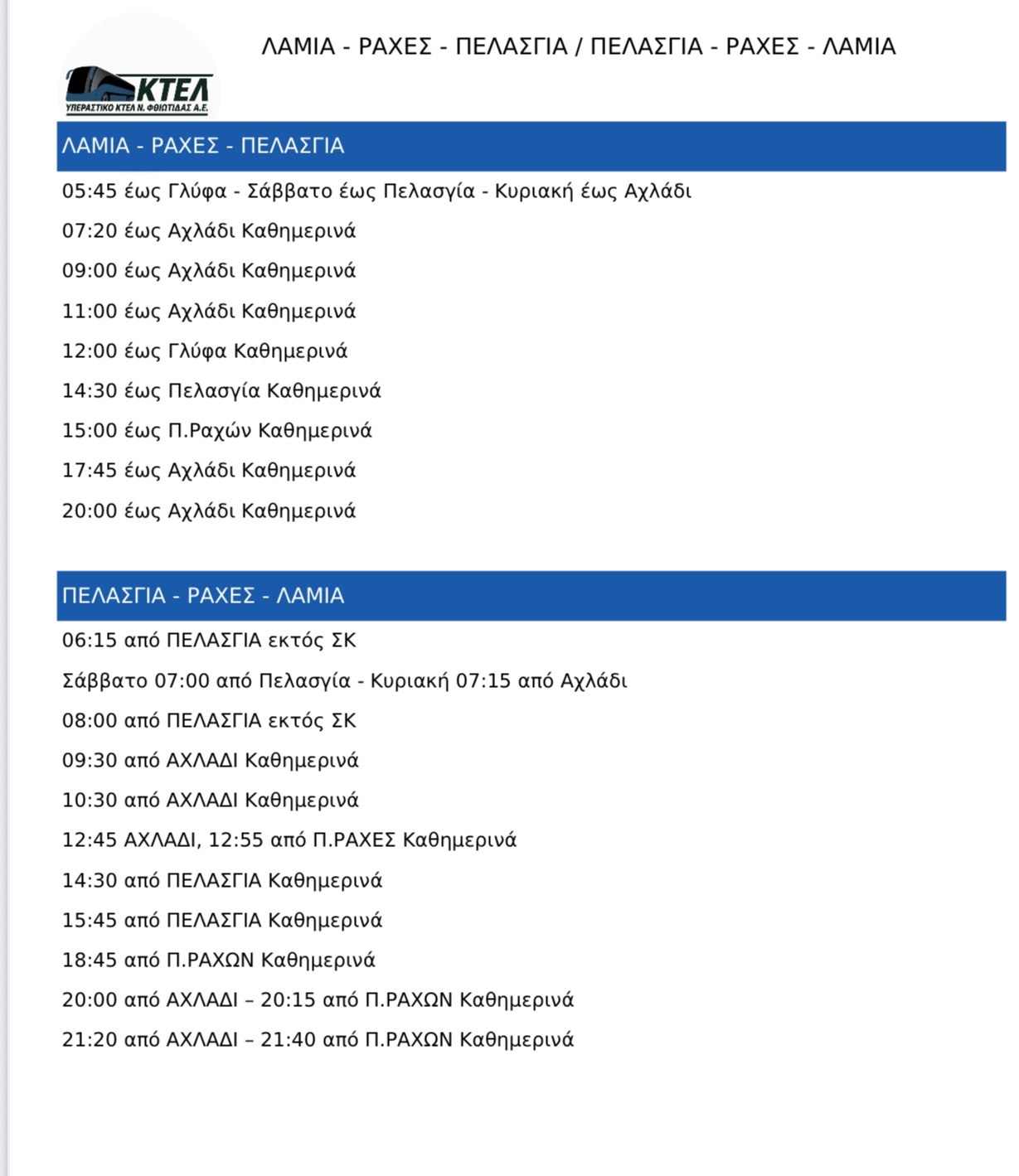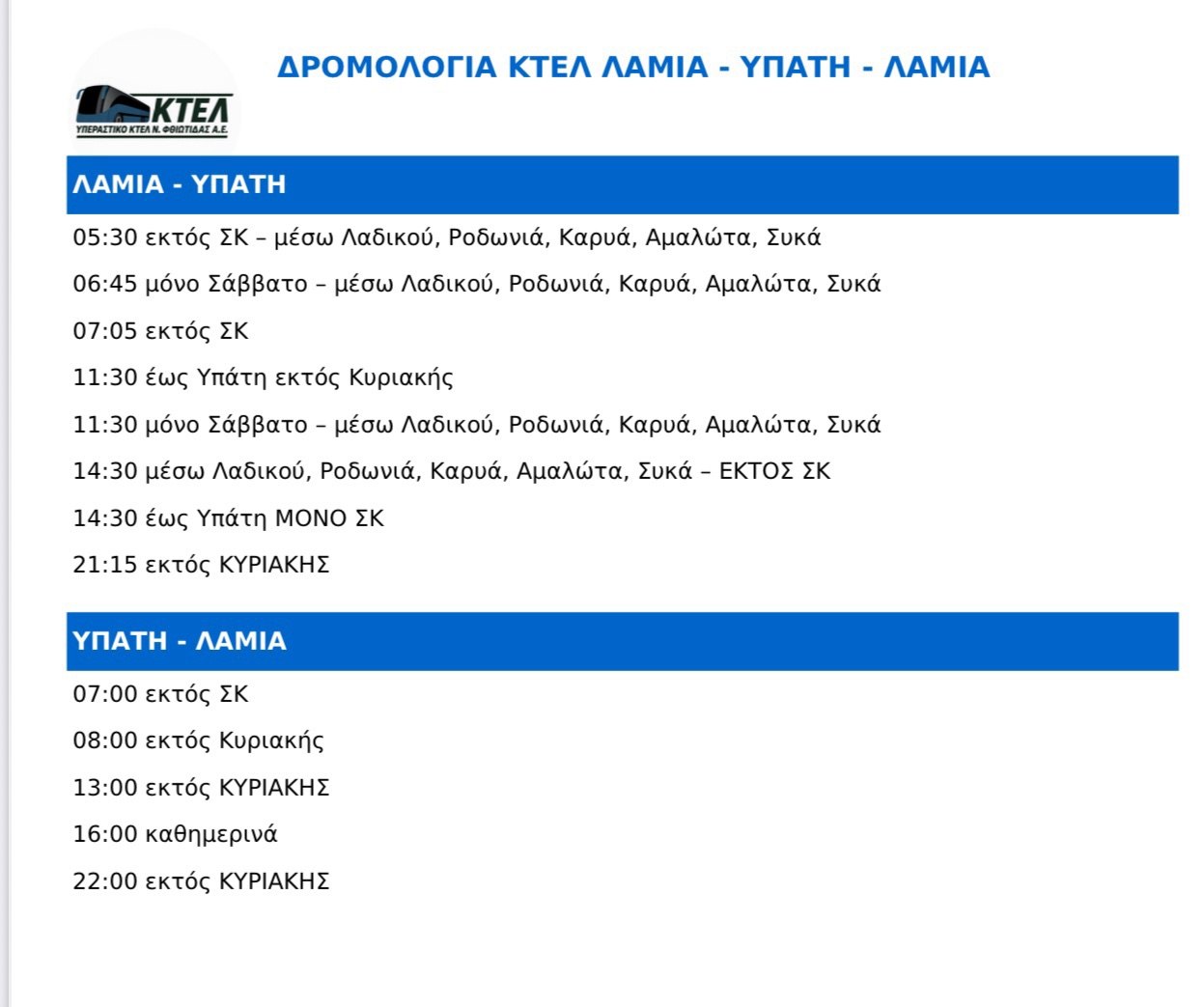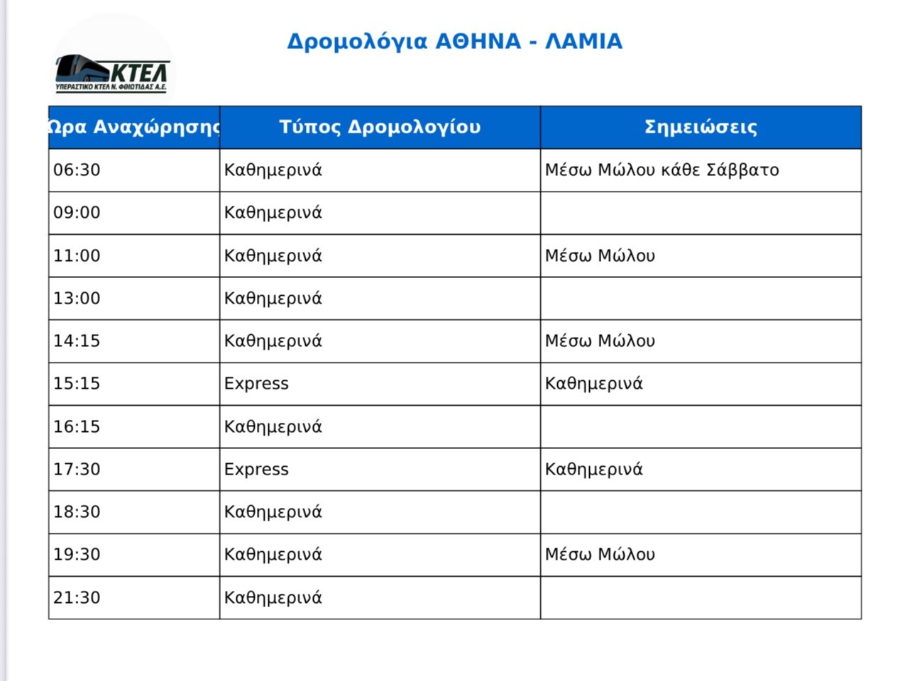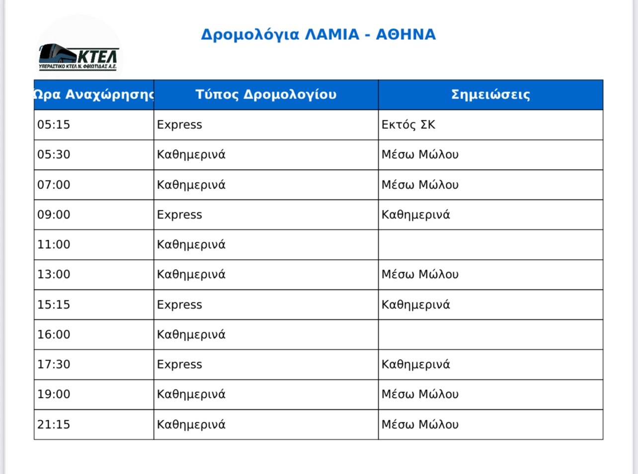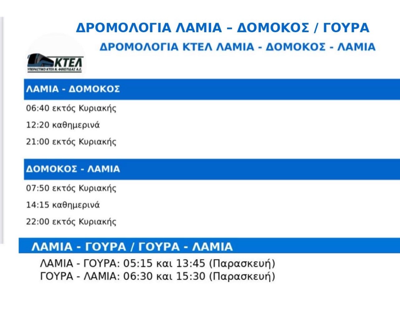 Υπεραστικό ΚΤΕΛ Φθιώτιδας: Στην υπηρεσία σας και για τους καλοκαιρινούς προορισμούς σας
