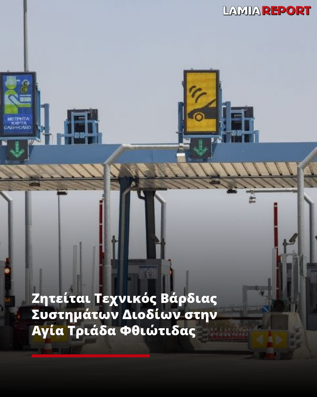 Ζητείται Τεχνικός Βάρδιας Συστημάτων Διοδίων στην Αγία Τριάδα Φθιώτιδας