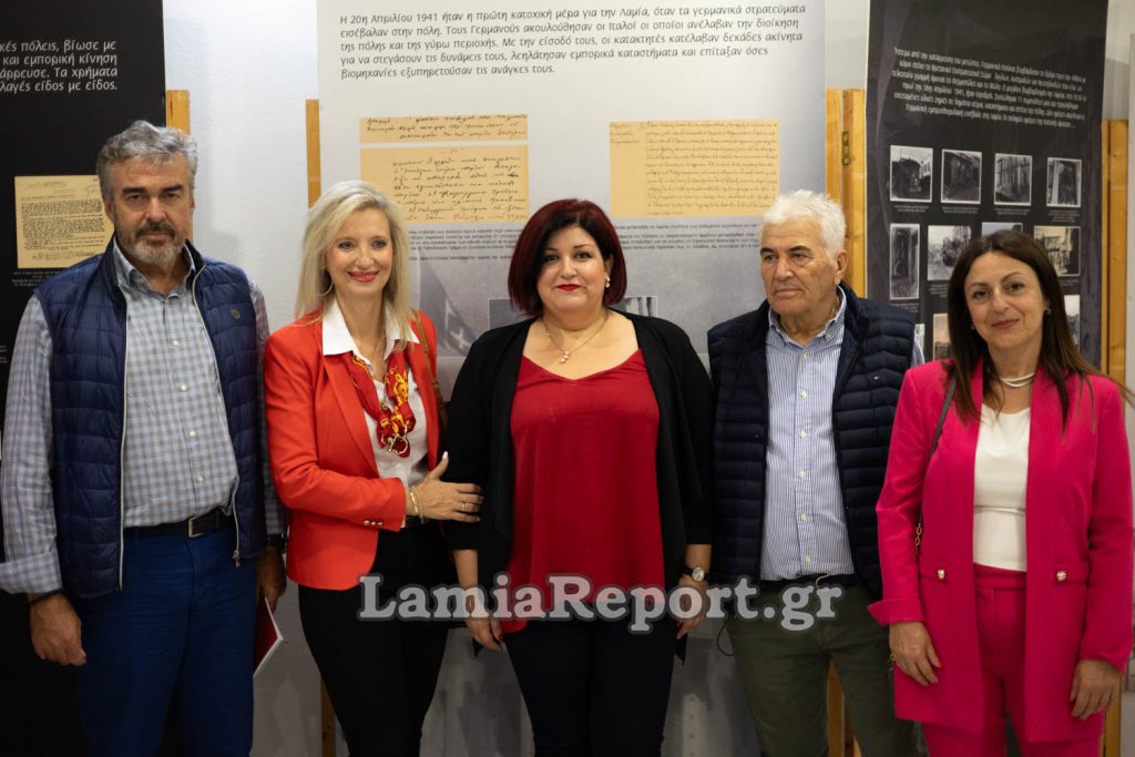 Μετά την λήξη του περιπάτου και με έντονη ακόμη την συγκινησιακή φόρτιση από όσα είχαμε ακούσει, ακολούθησαν τα εγκαίνια της έκθεσης με τίτλο “Η Λαμία ελεύθερη: Ελληνοϊταλικός πόλεμος – Κατοχή – Αντίσταση – Απελευθέρωση” στην κάτω στοά της Δημοτικής Πινακοθήκης, πριν την είσοδο για τα ΓΑΚ Φθιώτιδας.
